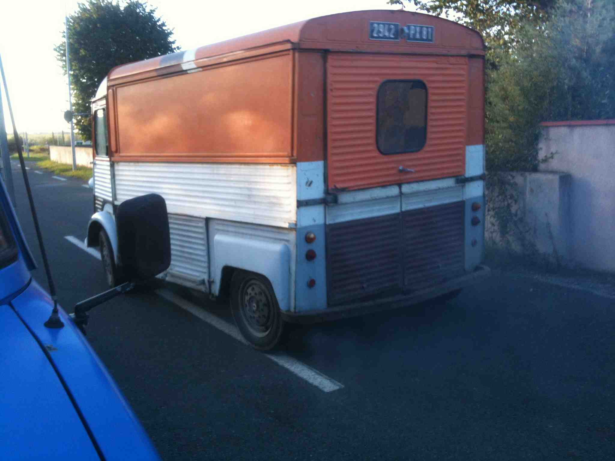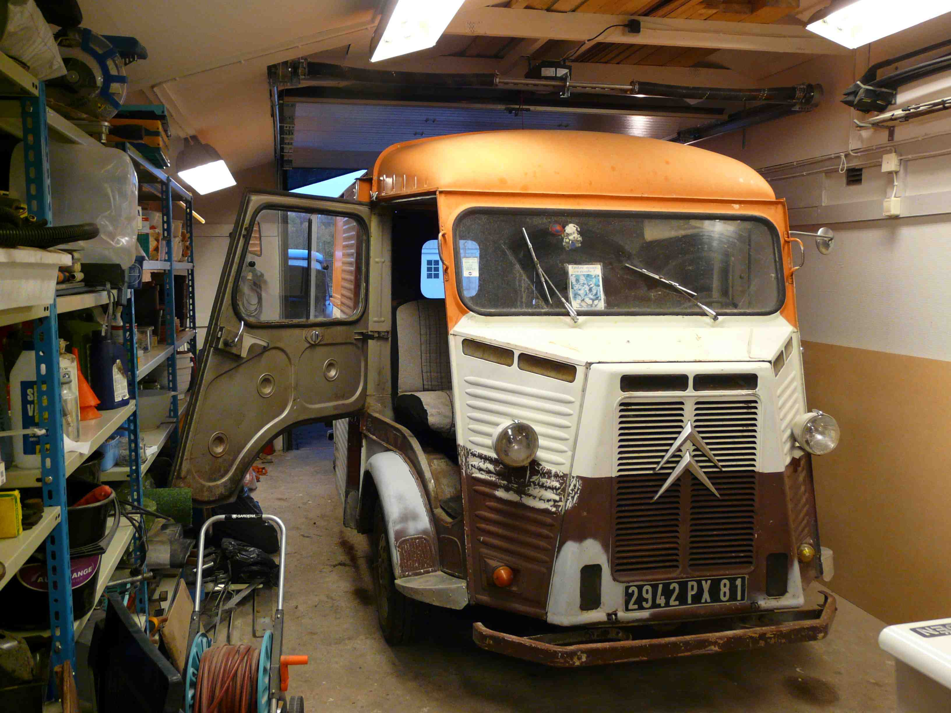 HY:n är en 73:a, en diesel som varit familjens ägo sen ny. Den köptes av en onkel till nuvarande ägaren, Phillipe, vars far tog över bilen i början av 90-talet och använde den till kortare turer, som längst till Montpellier. Onkeln hade varit i Portugal med den när den var ny och nu har den gått garanterade 8600mil. Phillips pappa dog för 18 månader sen, Phillipe är skogshuggare, hade fallit 8 meter från ett träd, kom hem från sjukhuset en vecka tidigare och skulle vara sjukskriven 9 månader. Adelie har lovat skriva ihop bilens historia i ett mail till mig, jag har å min sida lovat att de ska få följa renoveringen.